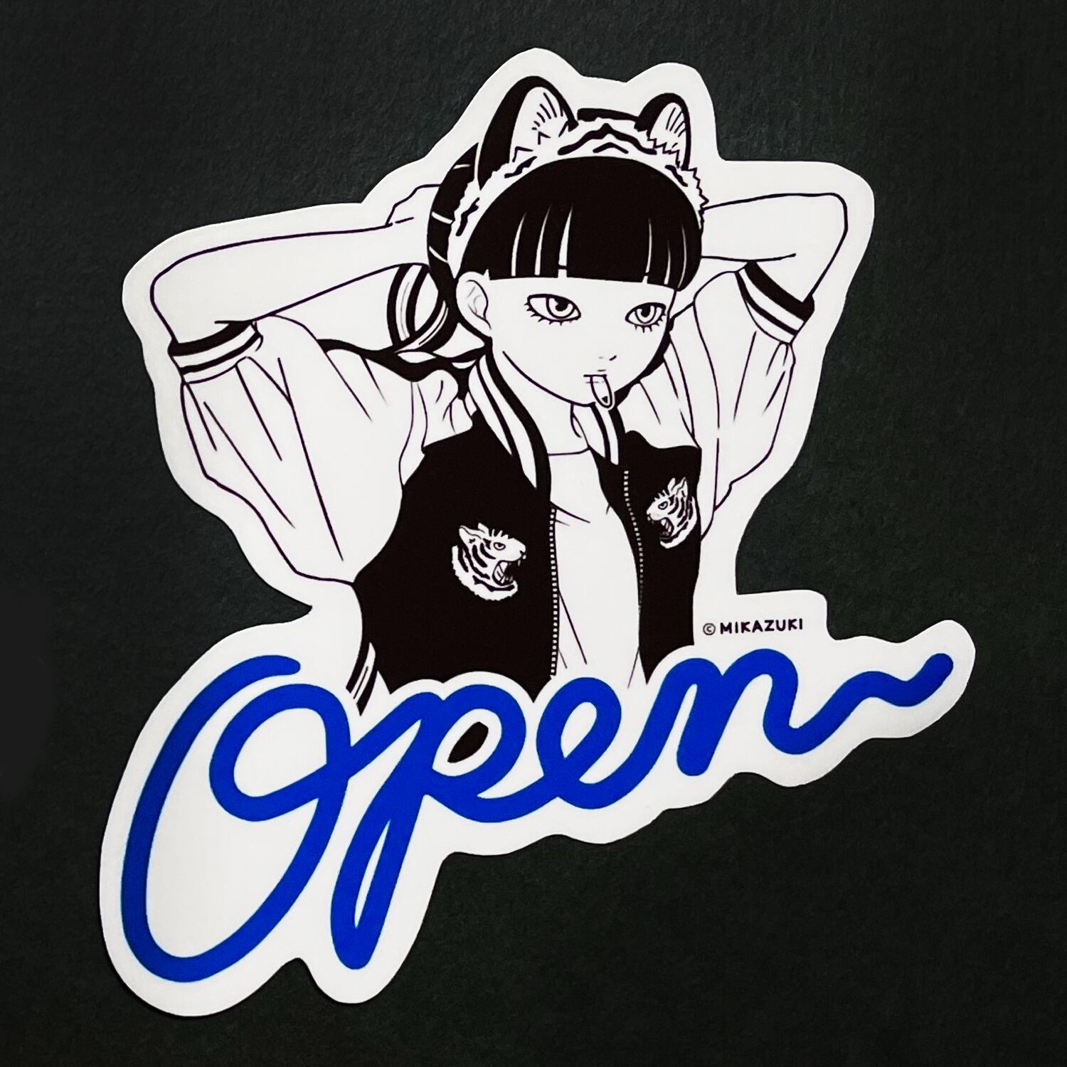 【数量限定】"虎尾茶房OPEN" ダイカット ステッカー ブルー MIKAZUKI / ミカヅキ